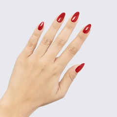 Strawberry red. “Classic”. Medium. Opaque. Cold undertone.